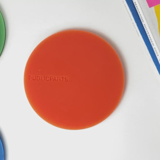 Hand-poured to order from clear silicone infused with thermochromic pigments in vivid red, yellow, and blue, each coaster transforms as it warms — colours soften, overlap, and fade in unexpected combinations.
